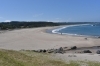 穏やかな砂浜の風景に、三陸海岸のごつごつとした岩礁などが入り混じる独特の景色が広がっています。